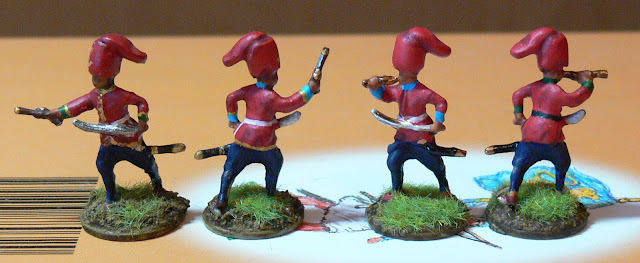 За основу взял зуавов с офицером от Italeri 6012 «Union Infantry» (другие зуавы на эту роль в меньше степени подходят, хотя информации по униформе низама не так уж и много, да и эта информация противоречива), пригодился Esci Set 223 «Confederate Infantry», а также Italeri 6014 «Confederate Infantry». Американцы очень хорошо подходят на эту роль, т.к. имеют узкие штаны, которые перелепить в шаровары очень просто.